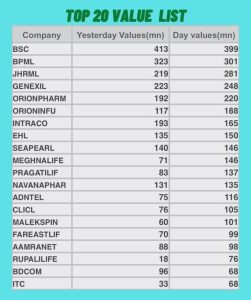 লেনদেনের শীর্ষ তালিকায় থাকা অন্যান্য কোম্পানি গুলোর তালিকা চিত্র আকারে দেয়া হল।