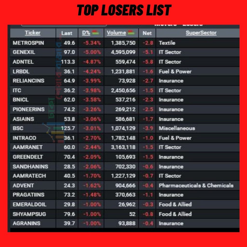 ডিএসিতে আজকের শীর্ষ ২০ লুজার তালিকা