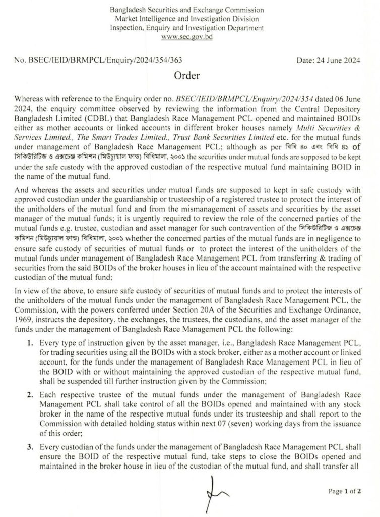 রেইস ম্যানেজমেন্টের কাস্টডিয়ানের অনুমোদন ছাড়া বিও হিসাবের লেনদেন স্থগিত