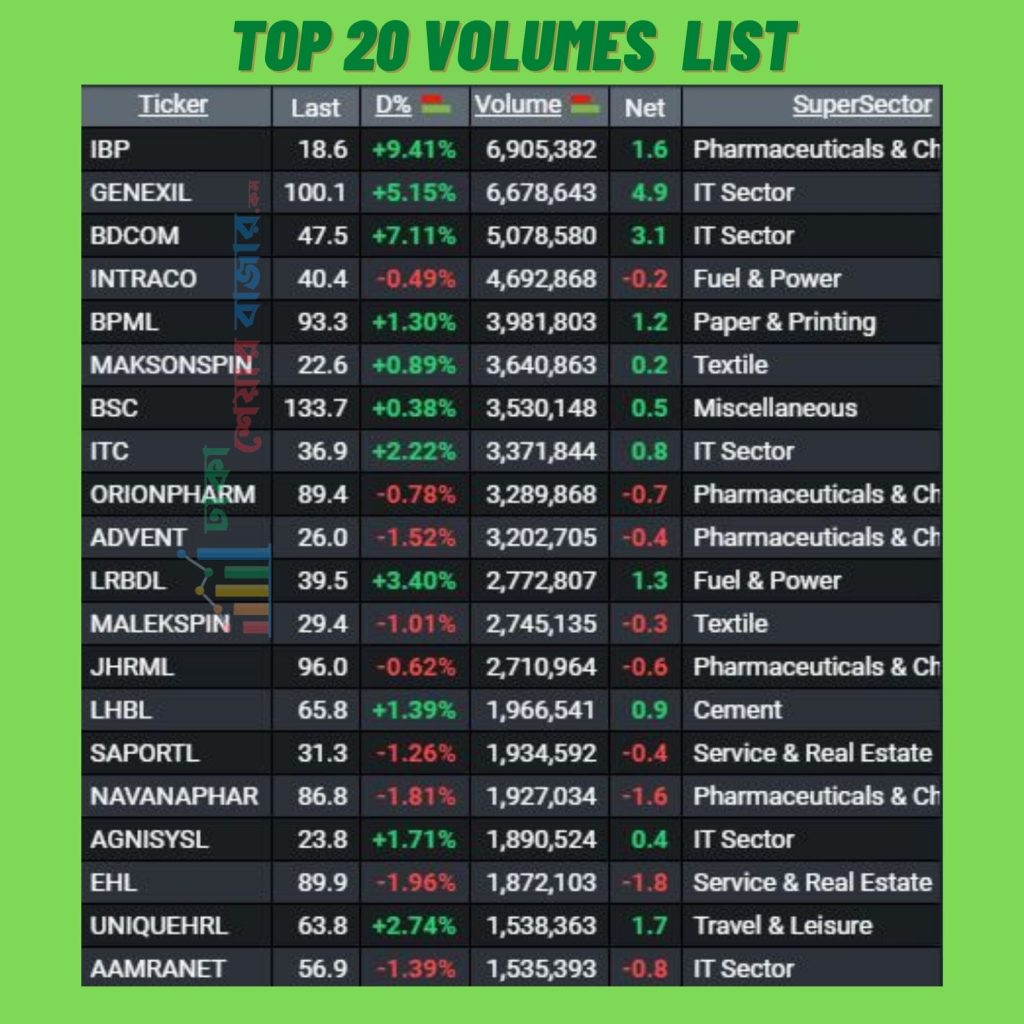 আজ সোমবার ১৬ জানুয়ারী ২০২৩, দেশের প্রধান পুঁজিবাজার ঢাকা স্টক এক্সচেঞ্জে (ডিএসই) লেনদেনে শেয়ার সংখ্যার দিক দিয়ে  শীর্ষে উঠে এসেছে ইন্দোবাংলা ফার্মা লিমিটেড (IBP), আজ কোম্পানিটির ৬৯ লাখ ০৫ হাজার ৩৮২ টি  শেয়ার লেনদেন হয়েছে।